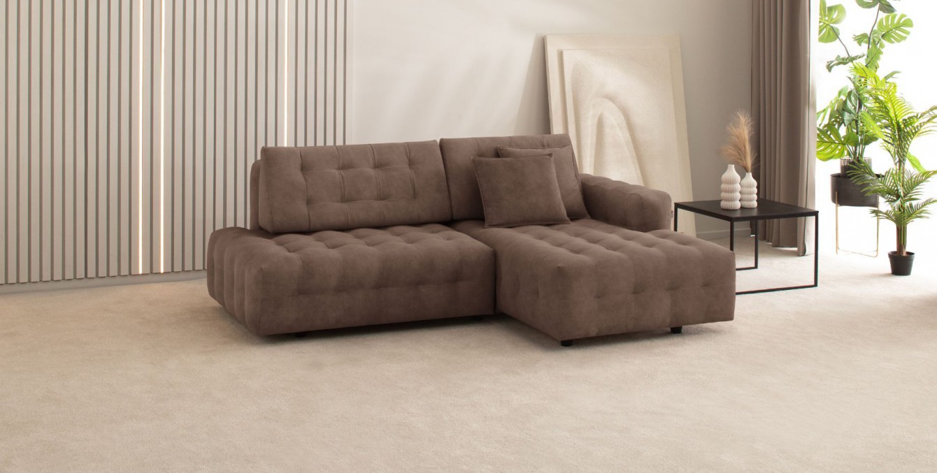 Šis baldas sukurtas taip, kad prireikus galėtumėte jį transformuoti į miegamąją lovą su patogiu vientisu čiužiniu. Tai itin praverčia sulaukus svečių, kai minkštas kampas naudojama kaip lova. Miegamasis mechanizmas – patogus ir saugus, nebraižo grindų dangos, paprastai naudojamas.