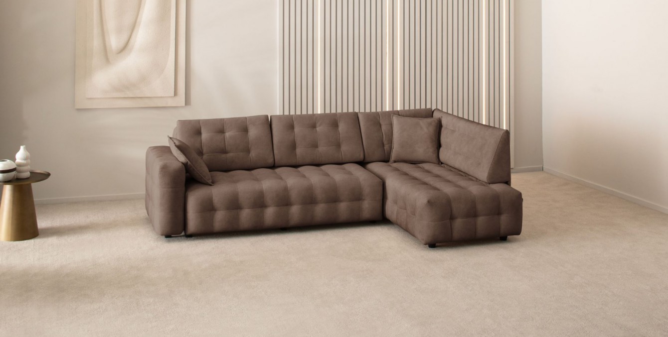 Šis baldas sukurtas taip, kad prireikus galėtumėte jį transformuoti į miegamąją lovą su patogiu vientisu čiužiniu. Tai itin praverčia sulaukus svečių, kai minkštas kampas naudojama kaip lova. Miegamasis mechanizmas – patogus ir saugus, nebraižo grindų dangos, paprastai naudojamas.