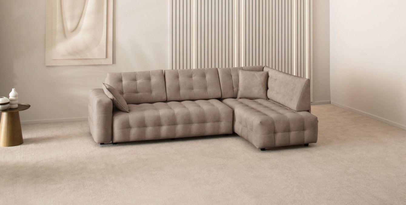 Šis baldas sukurtas taip, kad prireikus galėtumėte jį transformuoti į miegamąją lovą su patogiu vientisu čiužiniu. Tai itin praverčia sulaukus svečių, kai minkštas kampas naudojama kaip lova. Miegamasis mechanizmas – patogus ir saugus, nebraižo grindų dangos, paprastai naudojamas.