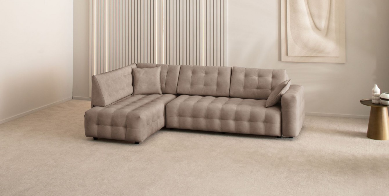 Šis baldas sukurtas taip, kad prireikus galėtumėte jį transformuoti į miegamąją lovą su patogiu vientisu čiužiniu. Tai itin praverčia sulaukus svečių, kai minkštas kampas naudojama kaip lova. Miegamasis mechanizmas – patogus ir saugus, nebraižo grindų dangos, paprastai naudojamas.