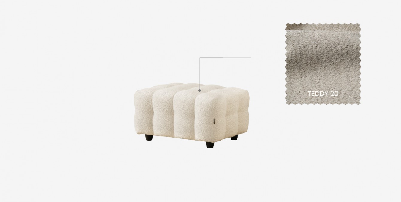 MIŠELIN pufas, sujungdamas komfortą ir stilių, taps išskirtiniu interjero akcentu. Jo minkštas, tekstūrinis apmušalas, švelniai kreminės spalvos suteikia jaukumo ir šilumos. Unikali forma, padalinta į mažesnius kvadratėlius, sukuria vizualinį kontrastą jaukiam ir švelniam gobelenui. Šis pufas ne tik funkcionalus sprendimas sėdėjimui, bet ir akcentas, galintis pakelti bet kokio interjero lygį.