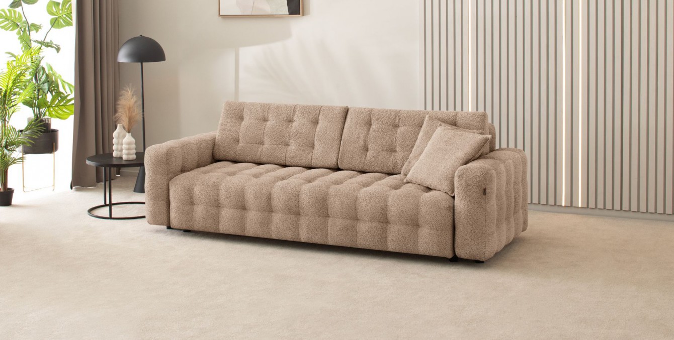 Šis baldas sukurtas taip, kad prireikus galėtumėte jį transformuoti į miegamąją lovą. Kietas čiužinio pagrindas su patvariomis spyruoklėmis suteikia puikią atramą ir užtikrina malonią aplinką miegoti kasdien. Pakeliamas miegamasis mechanizmas nebraižo grindų dangos. Rekomenduojame papildomai naudoti antčiužinį, kad miego kokybė būtų dar geresnė, o baldą naudotumėte ilgai.