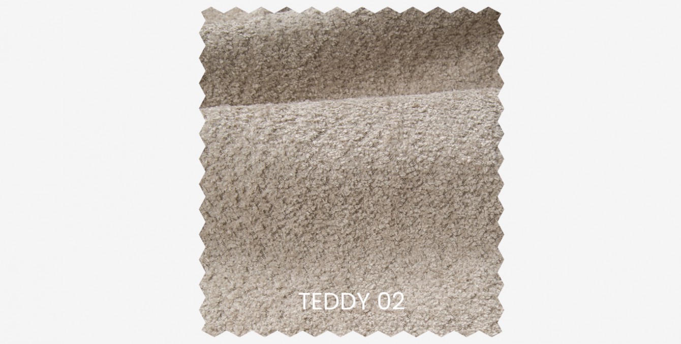 Baldas pagamintas iš minkšto, malonaus liesti, švelnios smėlio spalvos Teddy 02 gobeleno. Daugiau informacijos apie audinį rasite ČIA.
