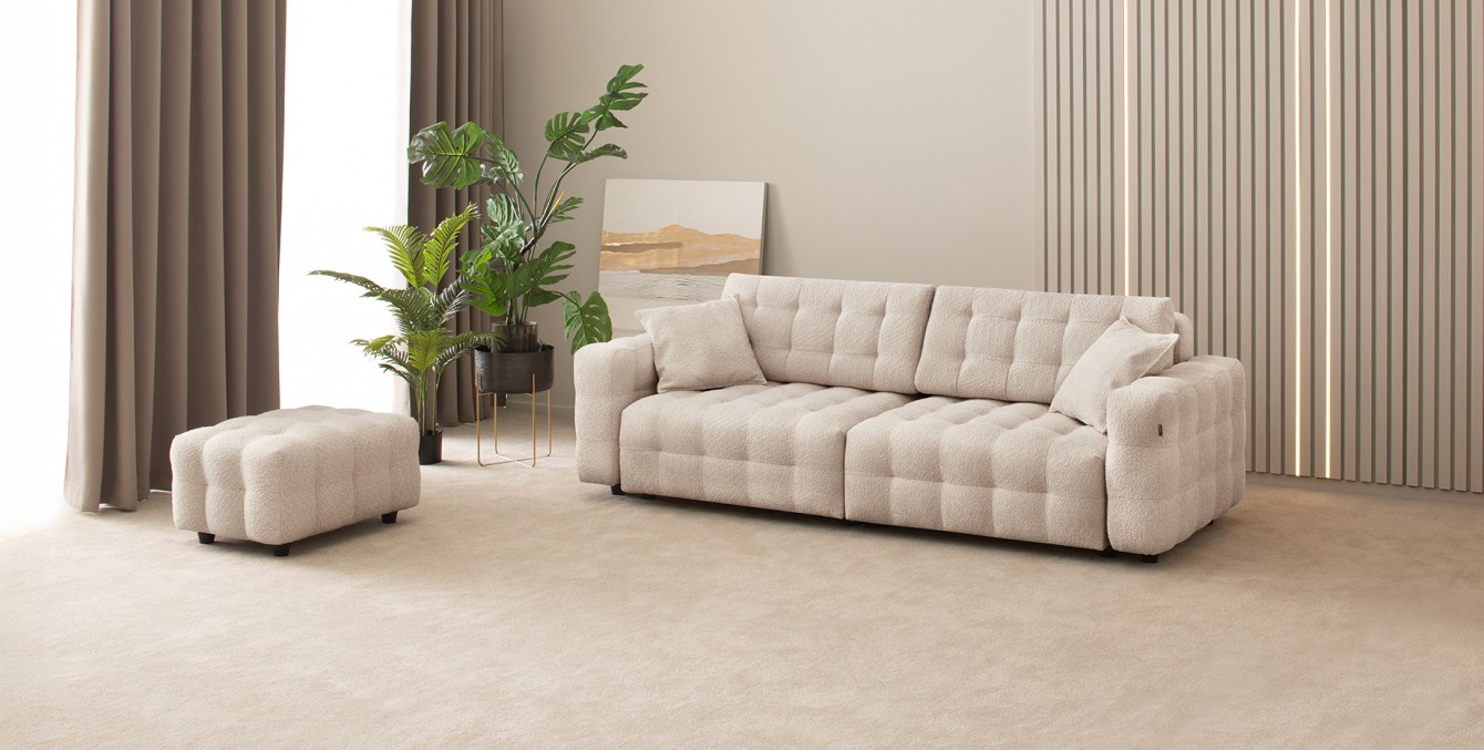 MIŠELIN kolekcijoje griežtos geometrinės linijos, kartu su taisyklingo rašto dekoratyviniais įsiuvais žaismingai kontrastuoja su baldo putlumu, minkštumu sukurdamas kontrastingą vaizdą. Iš vienos pusės - tvarkos, stiliaus, iš kitos - jaukumo ir noro prisėsti.