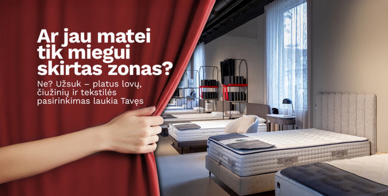 Užsukite į specializuotas tik miegui skirtas zonas Vilniuje ir Klaipėdoje esančiuose salonuose