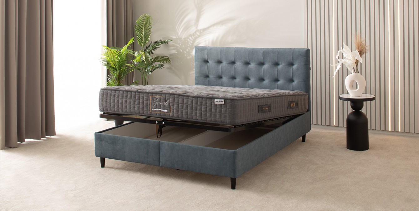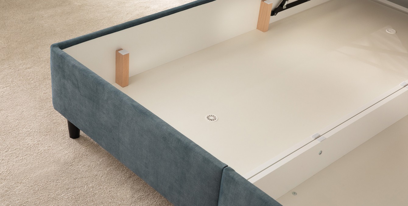 Lovoje, po čiužiniu įmontuota patalynės dėžė. Ji atsidaro iš galo, pakeliant čiužinį. Iki galo atidarius patalynės dėžę, lankstai fiksuoja padėtį, kad patogiai ir saugiai sudėtumėte ar išimtumėte daiktus. Daiktadėžėje integruotos ventiliacinės ertmės užtikrina gerą oro laidumą ir čia laikomi daiktai išlieka gaivūs.