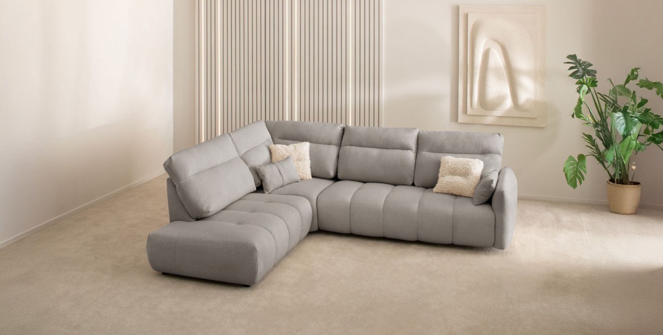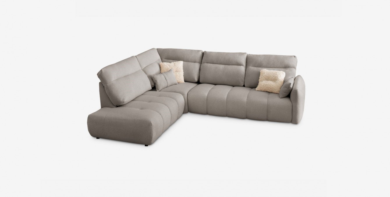 The AMBER LEGO corner stands out for its sophisticated design, which includes soft lines, rounded corners and vertical decorative insets. This furniture also has a wide selection of fabrics and details, allowing you to customize it to your individual needs and interior style.