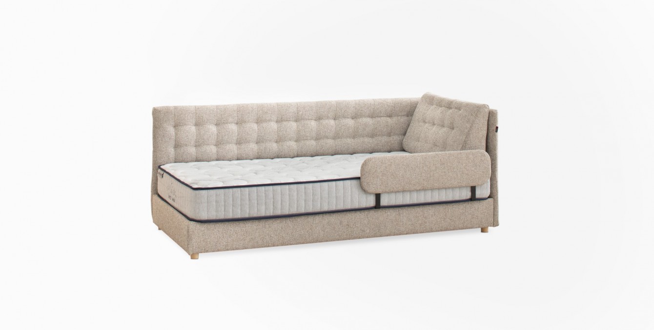 The SOLO daybed is a stylish and versatile piece of furniture that combines a comfortable rest and sleep area with modern design. Thanks to its spacious dimensions (2070 × 960 × 810 mm) and wide customization options, it can be easily adapted to different interiors. You can choose from a rich fabric palette, select the armrest side (left or right), and match the leg color to your home style. Solid wooden legs ensure stability and elegance, while the optional protective guard adds extra functionality and safety.