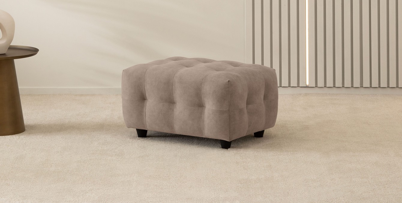 MIŠELIN pouf, combining comfort and style, will become an exclusive interior accent. Its soft, textured upholstery in soft cream colors provides coziness and warmth. The unique shape, divided into smaller squares, creates a visual contrast to the cozy and soft tapestry. This ottoman is not only a functional solution for sitting, but also an accent that can raise the level of any interior.