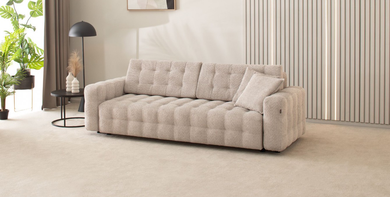 MIŠELIN collection upholstered furniture uses a liftable sleeping mechanism. Exclusive beech wood, plywood, MDP and LMDP panels are used in the production of the furniture itself. Elastic polyurethane foam is used in the seat and support cushions.