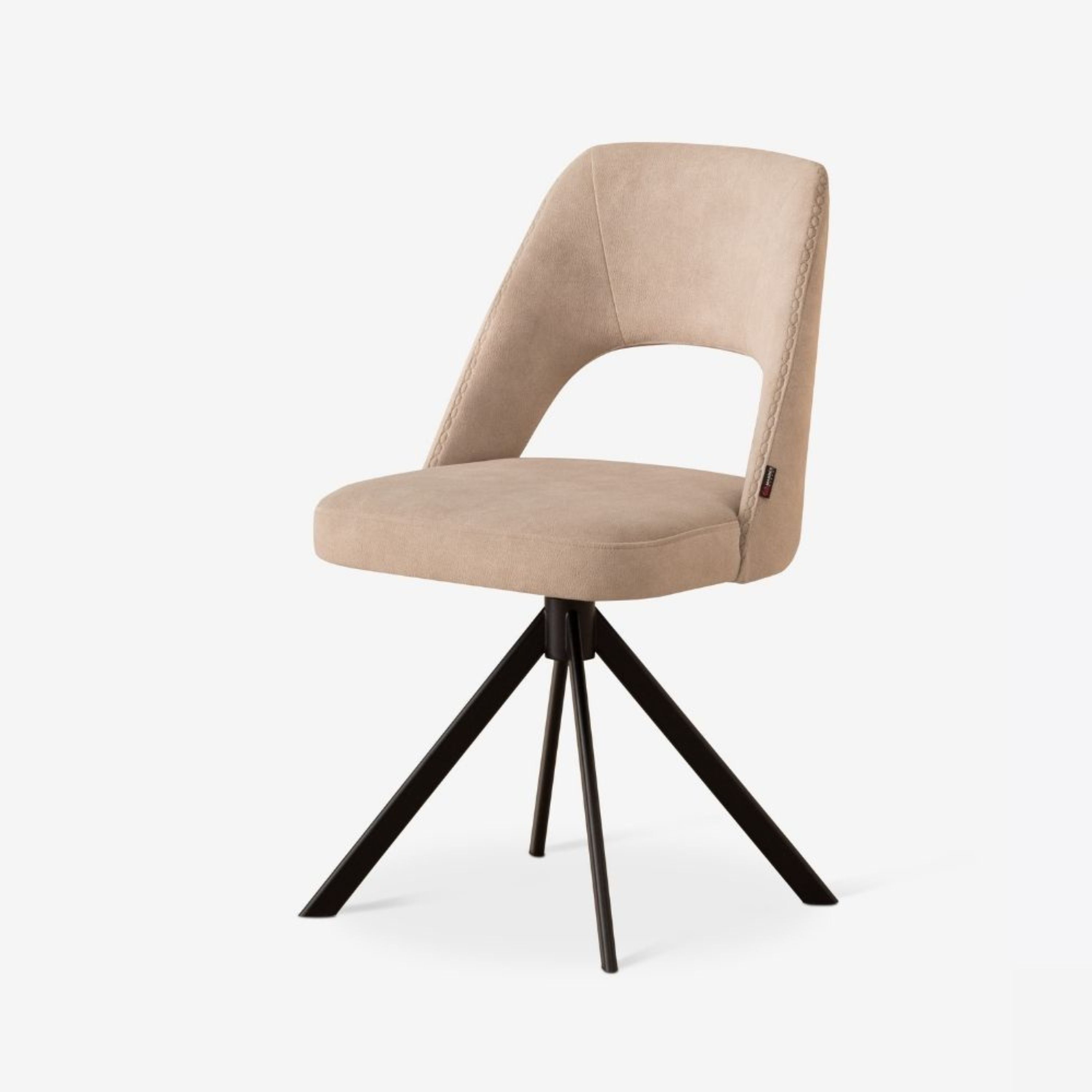 Eklektiško stiliaus interjere patariama išbandyti ryškesnių, žaismingesnių spalvų paletę. Originalios, minkštos kėdės valgomajam gali tapti vienu iš esminių tokio įvaizdžio akcentų. Metalinėmis detalėmis papildyti baldai suteikia aplinkai industrinio žavesio, o minimalistinis dizainas tarsi savaime įsilieja į modernią aplinką.